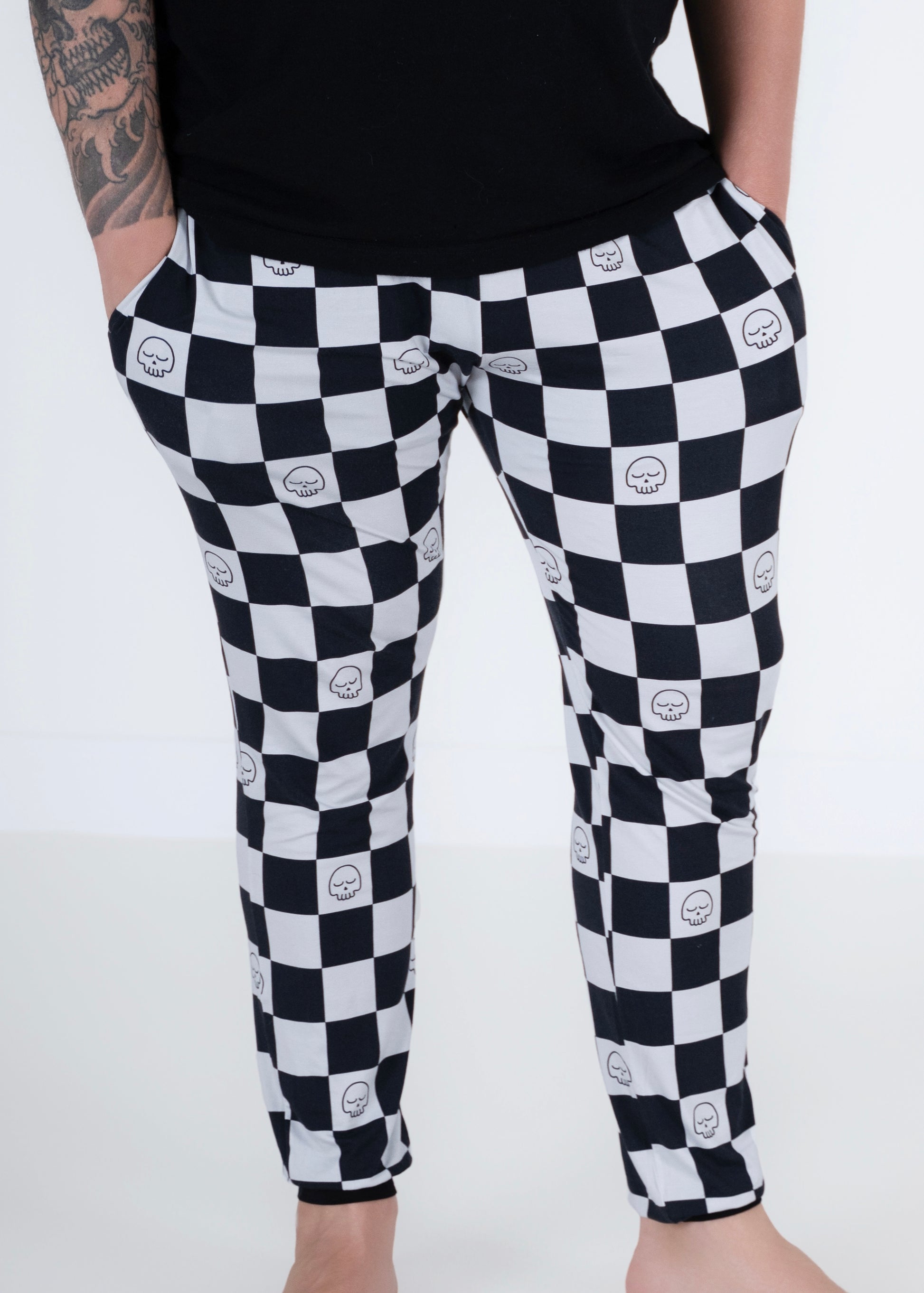 Comfy, stylish, and just the right amount of bold—our Checkered Vibes Adult Joggers are made to move with you. The striking black and white checkered pattern pairs perfectly with our signature logo for a laid-back look with edge. Made from our dreamy-soft bamboo blend, these joggers feature a comfortable fit, adjustable waistband, and pockets for everyday ease.