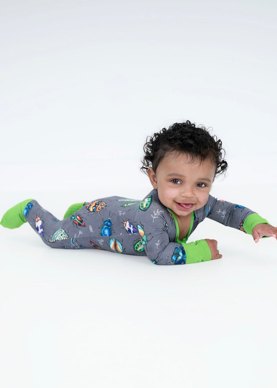 Let curiosity bloom with our Garden Explorer Zippy! This vibrant print features hand-drawn bugs in a rainbow of colors, perfect for your little nature lover. Made from our signature soft and breathable bamboo fabric, this one-piece includes a two-way zipper, fold-over mitts and footies (in select sizes), and plenty of stretch for all-day exploring—whether it’s tummy time or bug hunts in the backyard.