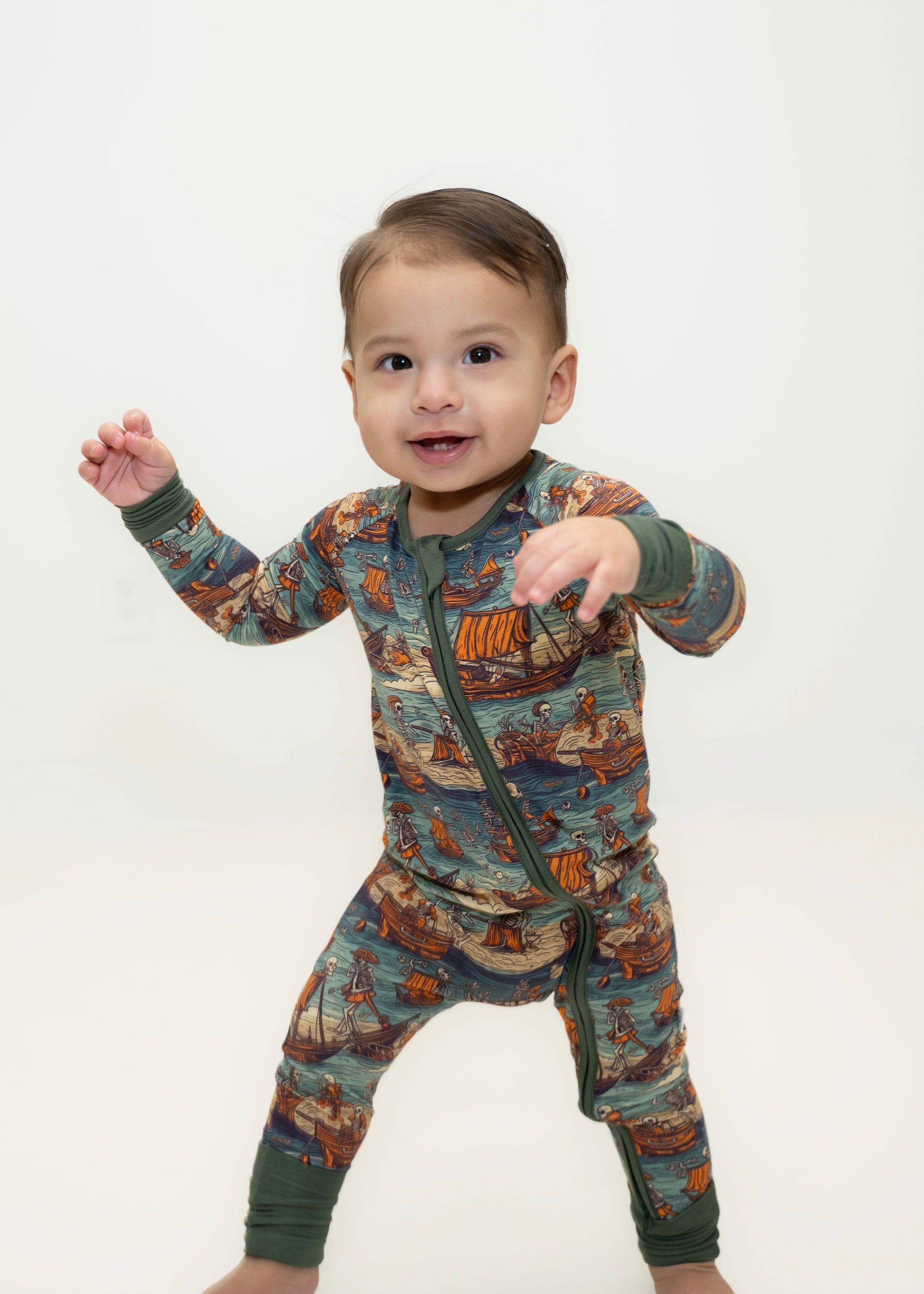 Set sail on an adventure with our Pirates Zippy! Featuring playful pirate ships and ocean fun, this design is perfect for little explorers with big imaginations. Made from our signature buttery-soft bamboo, it’s breathable, stretchy, and gentle on sensitive skin. With a two-way zipper for quick and easy changes and built-in foot grips for steady little steps, this Zippy is ready for treasure hunts, storytime, and cozy cuddles after a day of adventure!