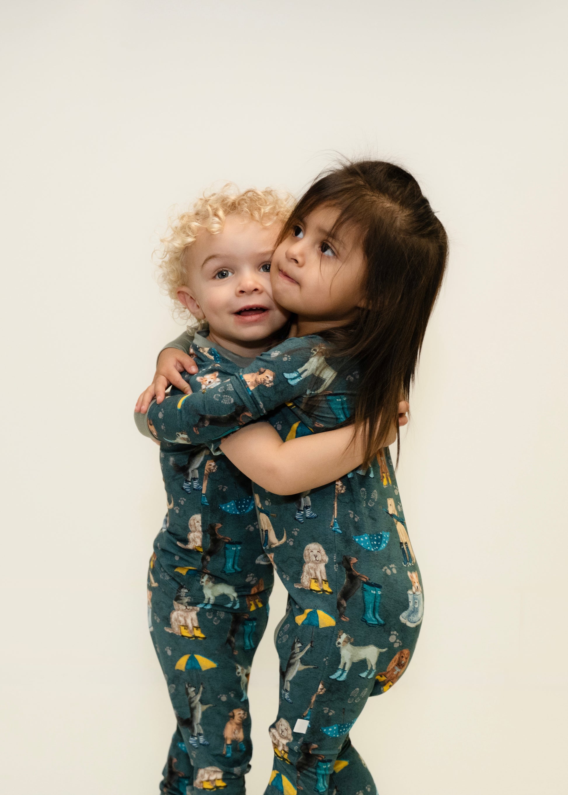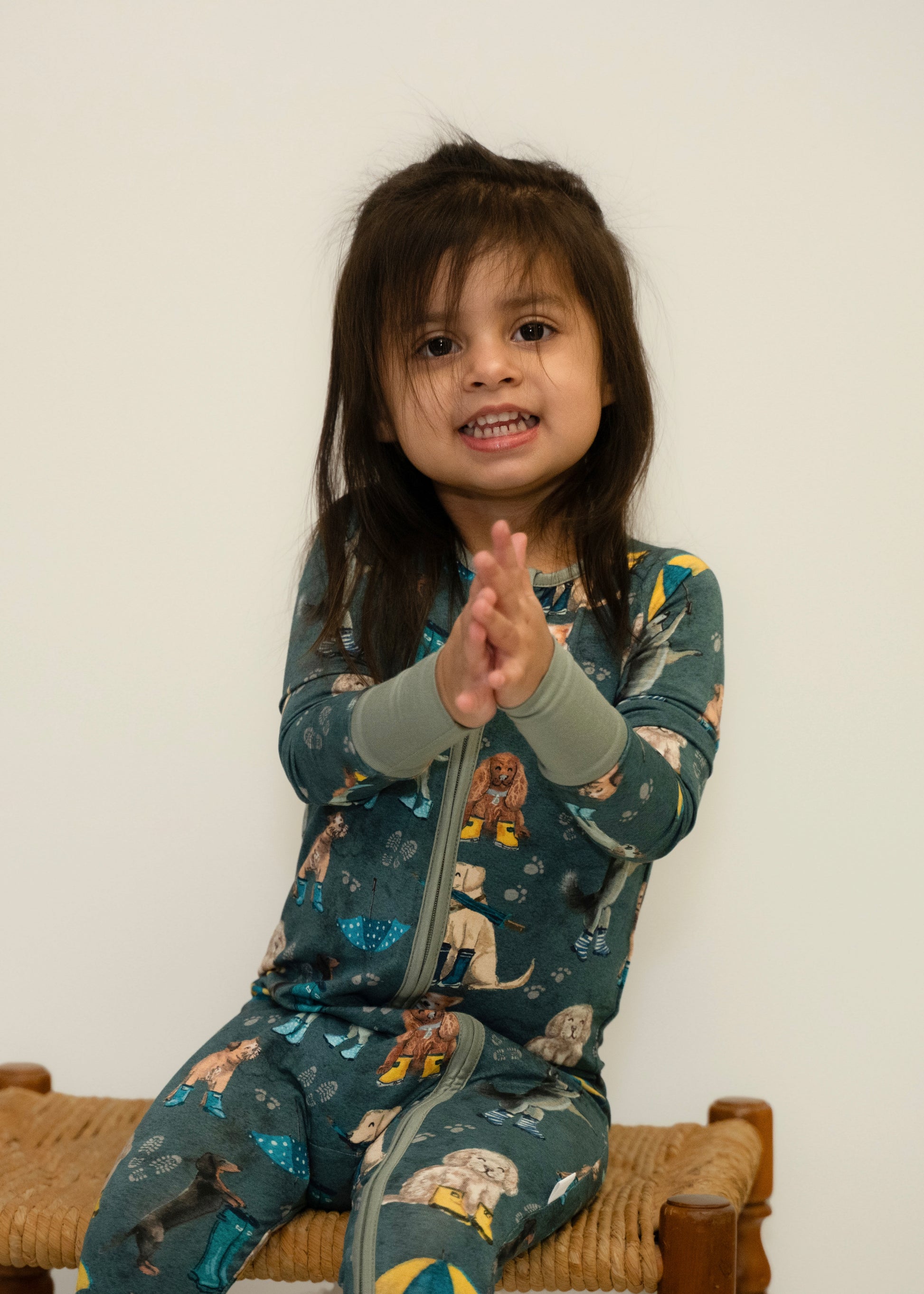 Our Puddle Pups Zippy is the perfect cozy companion for rainy spring days! Featuring adorable little pups in their rain boots, this playful print brings a splash of fun to every adventure. Made from our signature buttery-soft fabric with a two-way zipper for easy changes and grips on all sizes, this zippy is designed for ultimate comfort and convenience.