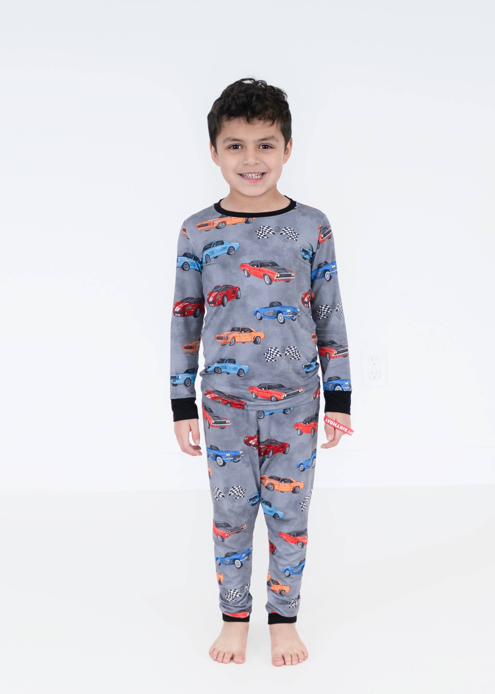 Full throttle comfort meets vintage cool in our Supercharged 2-piece set. This long-sleeve, long-pants combo features a bold hand-drawn print of iconic muscle cars that’s perfect for any mini car enthusiast. Crafted from our breathable, buttery soft bamboo blend, it’s designed for all-day cruising—whether they’re zooming around the house or parked on the couch for story time.