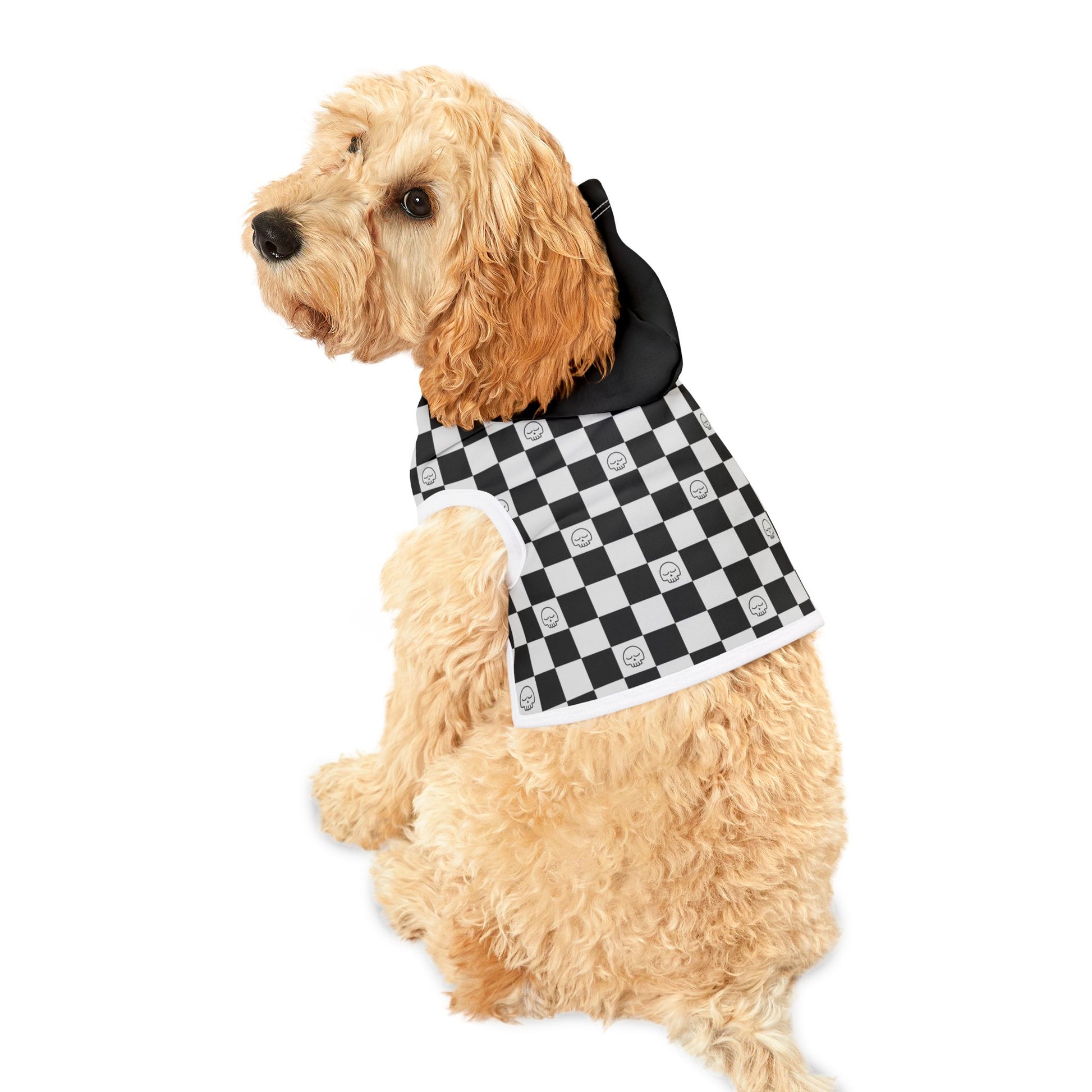 Trendy Black & White Checkered Pet Hoodie for Stylish Pets