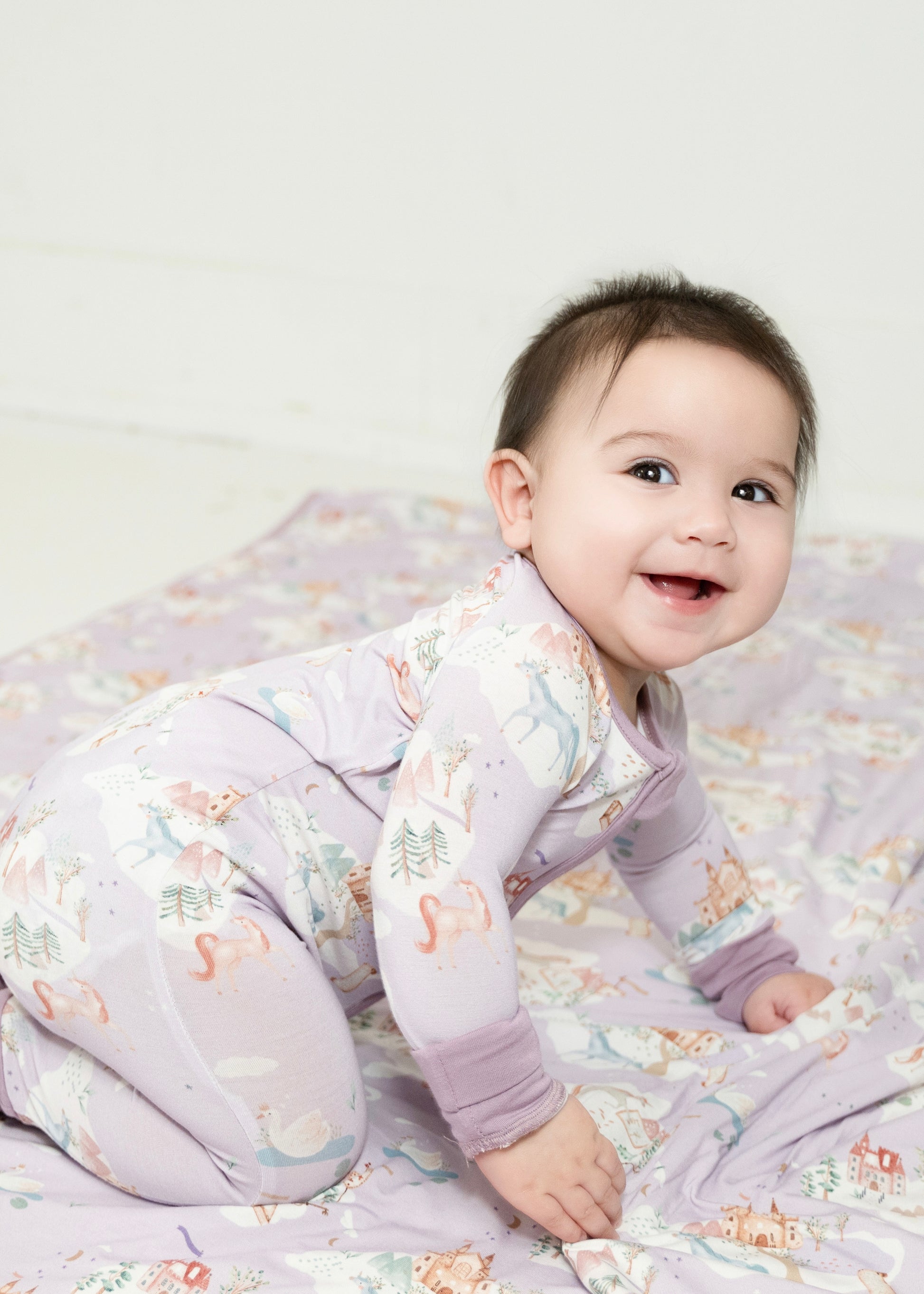 Drift into a world of magic with our Dreamland Unicorns Zippy! Featuring a whimsical unicorn design, this one-piece is made from our signature buttery-soft bamboo, perfect for keeping little dreamers cozy and comfortable. Breathable, stretchy, and gentle on sensitive skin, it’s designed for all-day wear. With a two-way zipper for easy changes and built-in foot grips for stability, this enchanting Zippy is ready for sweet dreams and magical adventures!