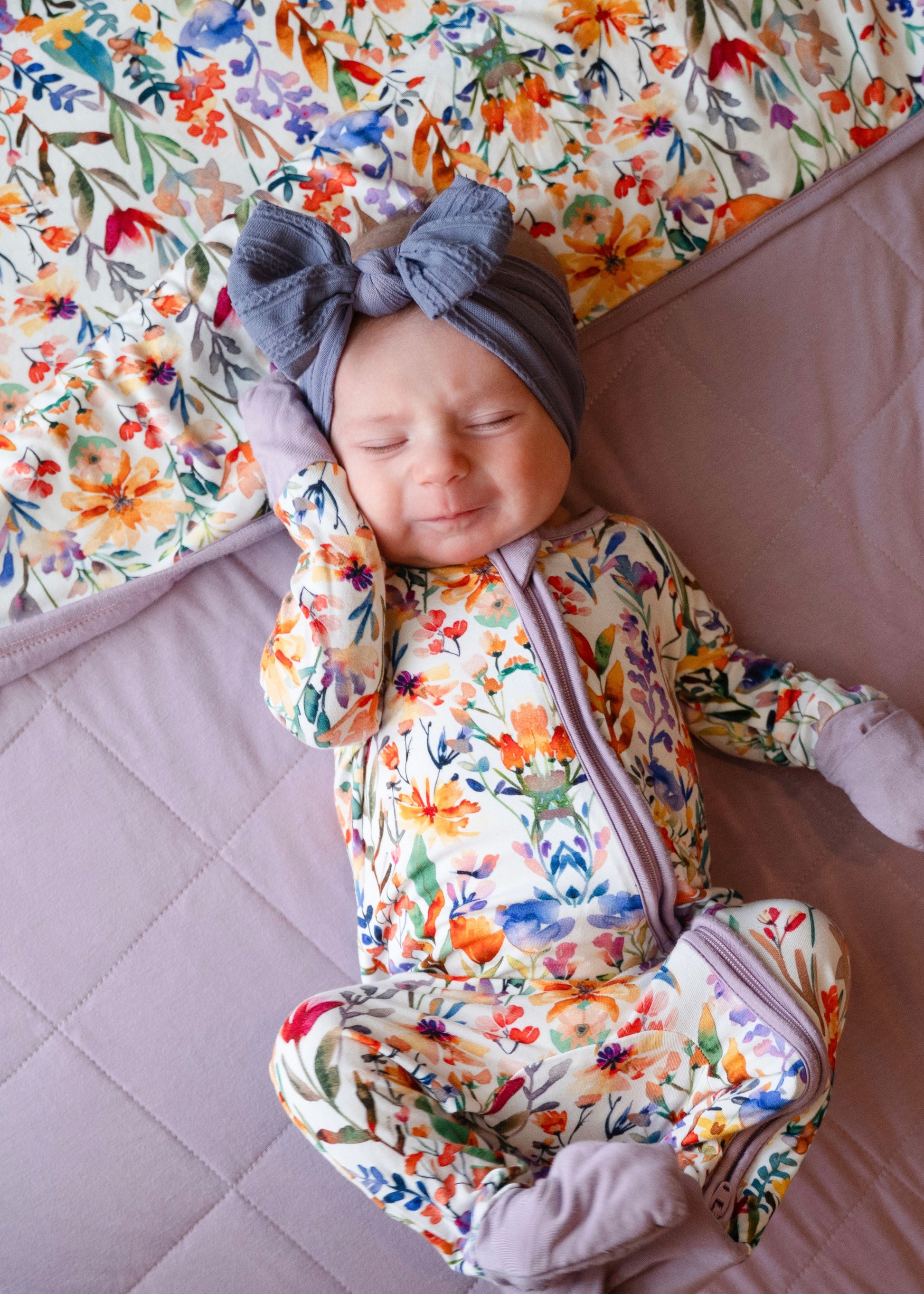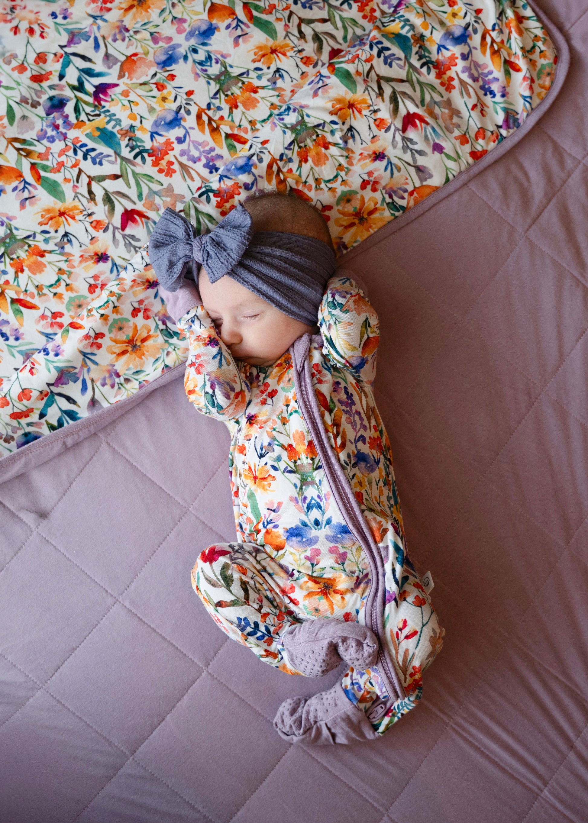 The Wild Blossom Zippy features a stunning watercolor floral design in vibrant hues, crafted from ultra-soft bamboo for ultimate comfort. With a snug, breathable fit and a two-way zipper for easy changes, it’s the perfect blend of style and practicality for your little one.